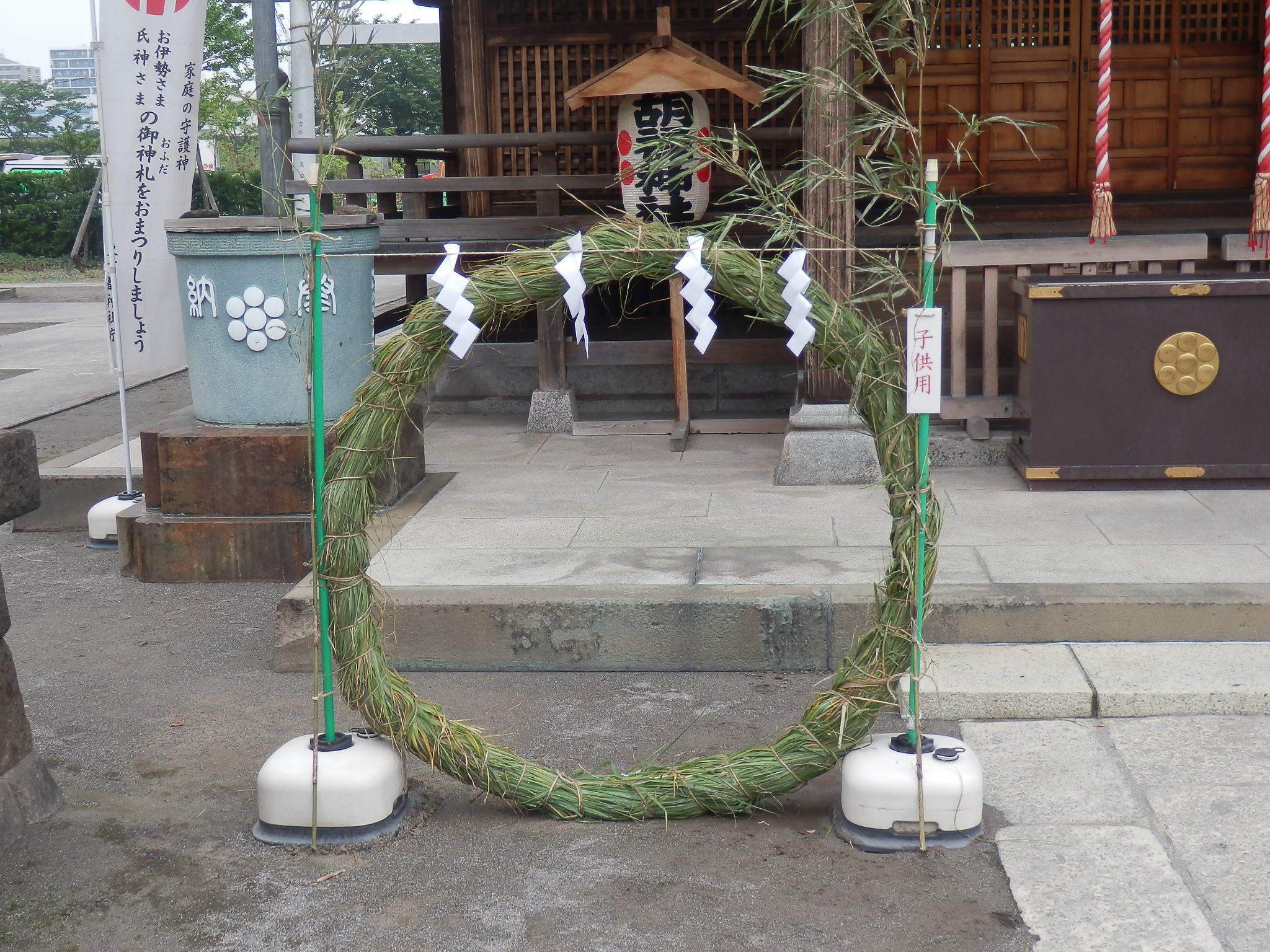 茅の輪を腰につけると免れる」といわれ、そのとおりにしたところ、疫病から免れることができたという故事に基づきます。